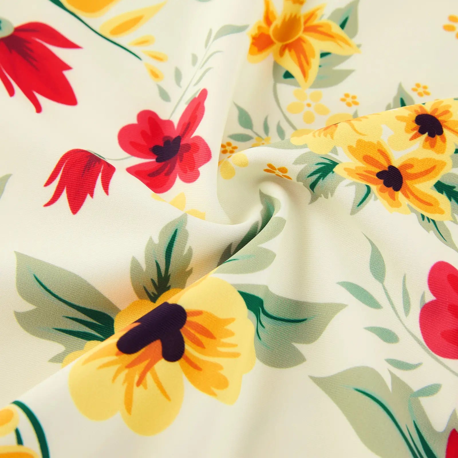 2-Piece Girls Rash Guard Set with Bikini Bottom-Beige Flower