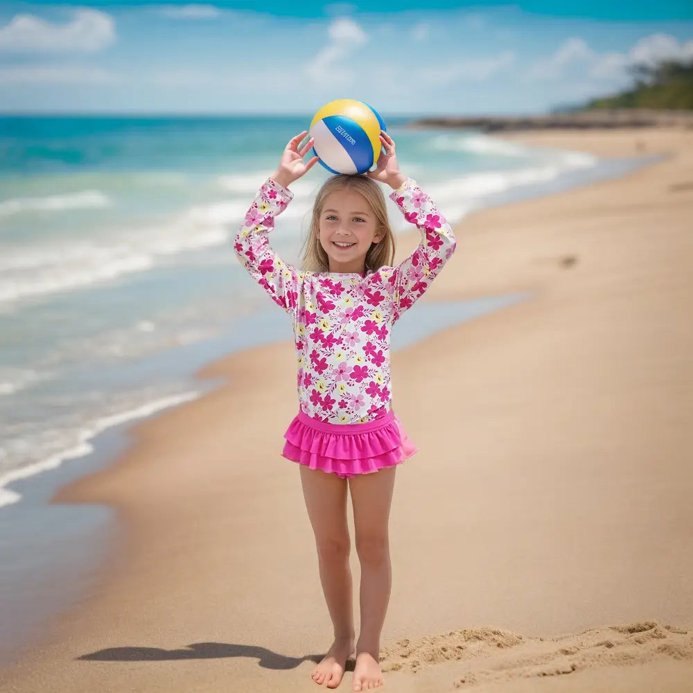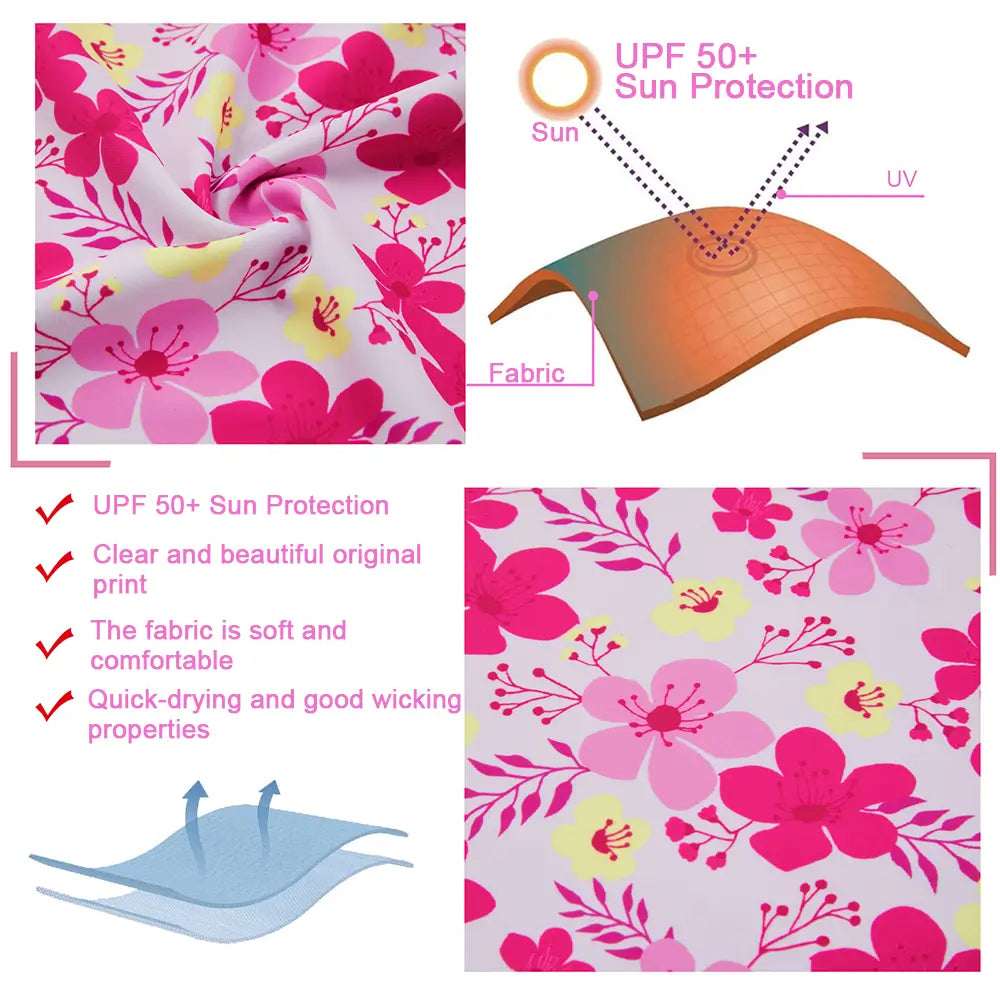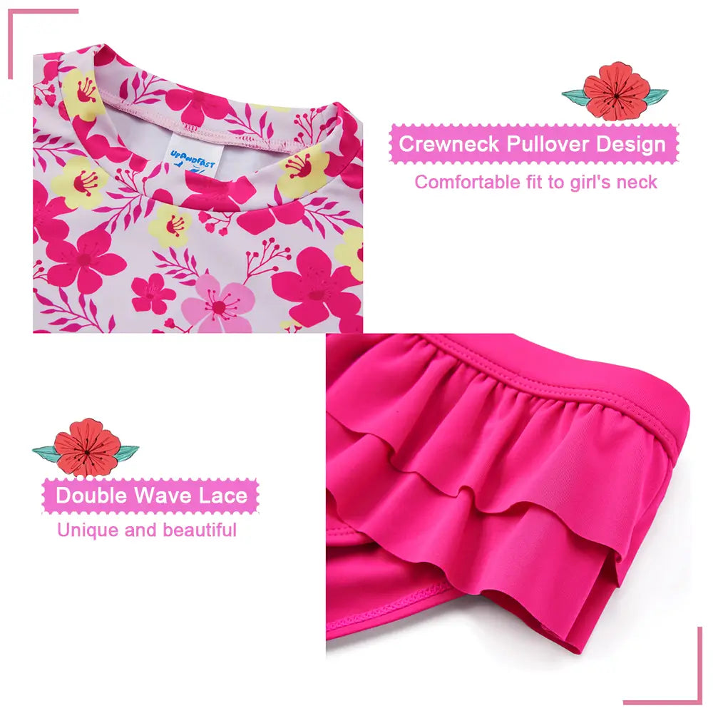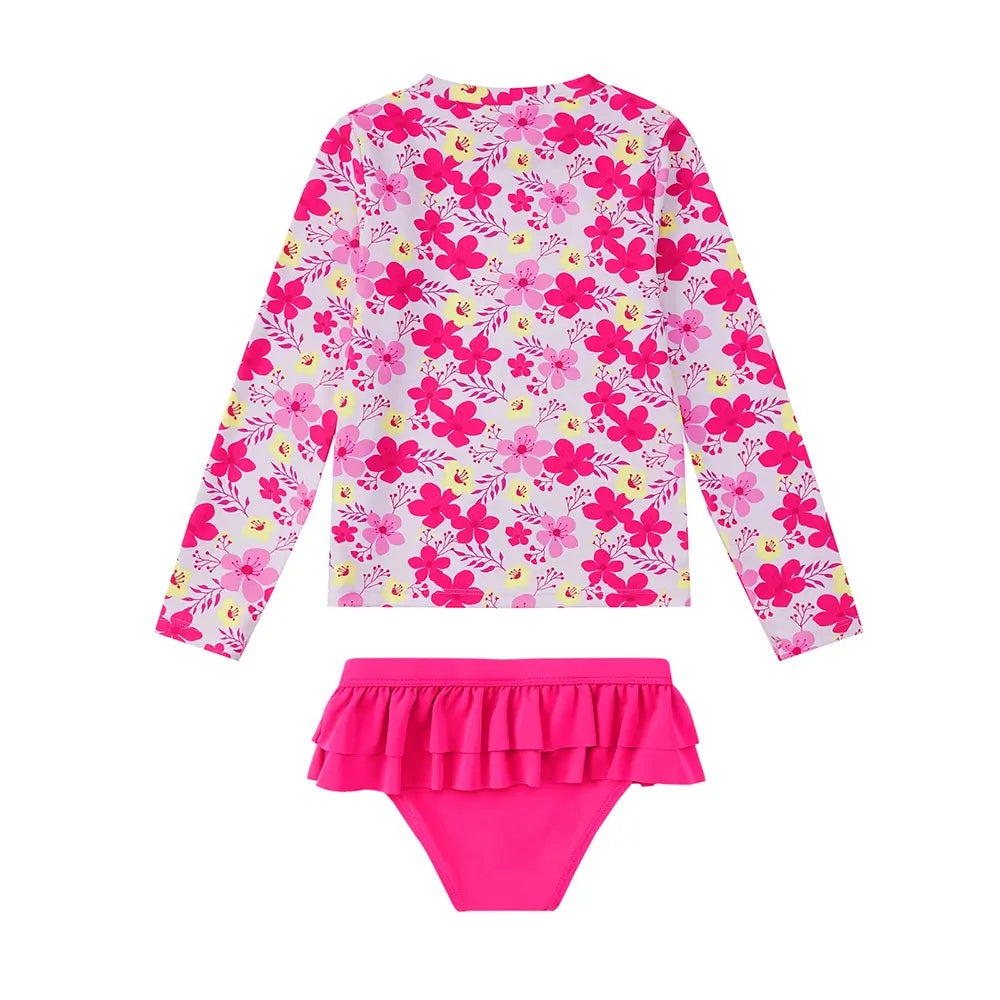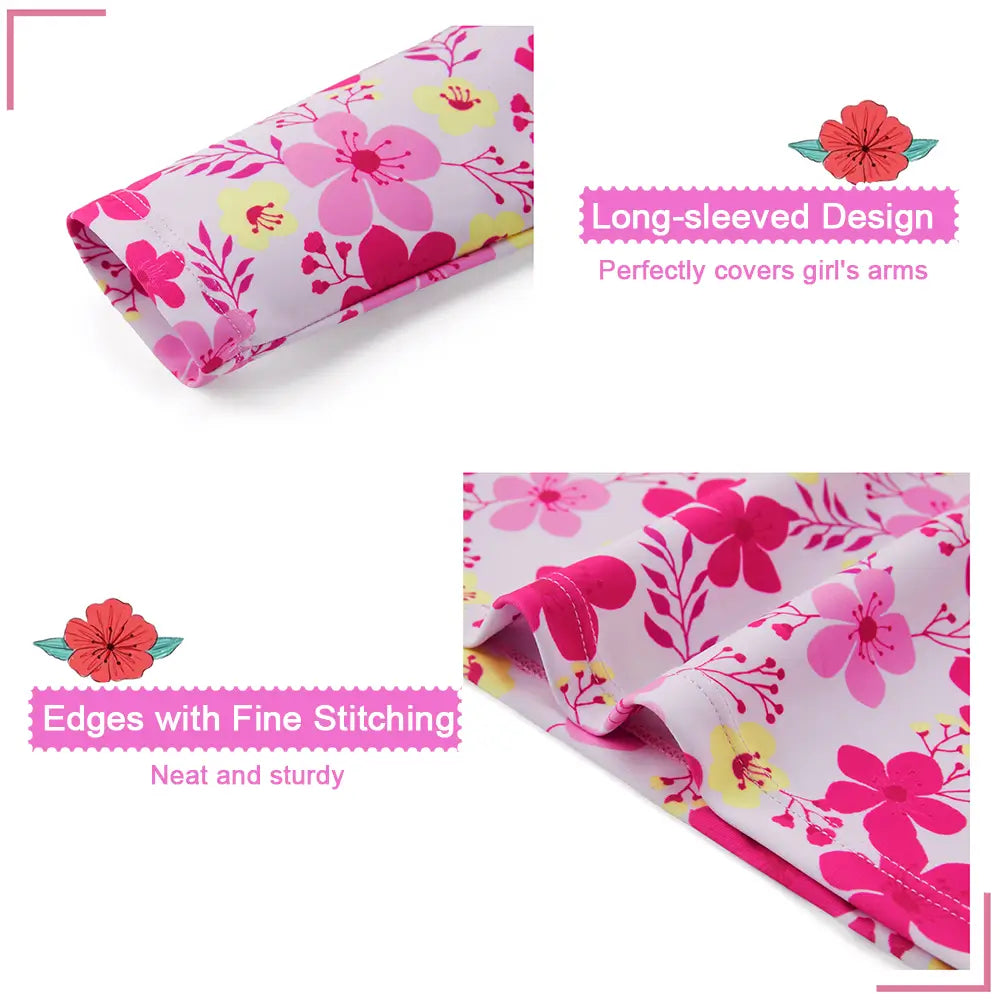 UPF 50+ Girl Split Swimsuit Rash Guard Set-Pink Flower