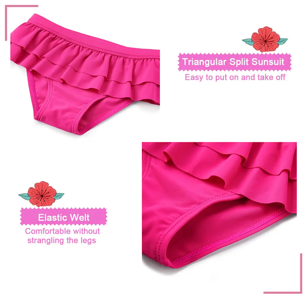 Fashionable wavy lace decoration, bikini for little girls.