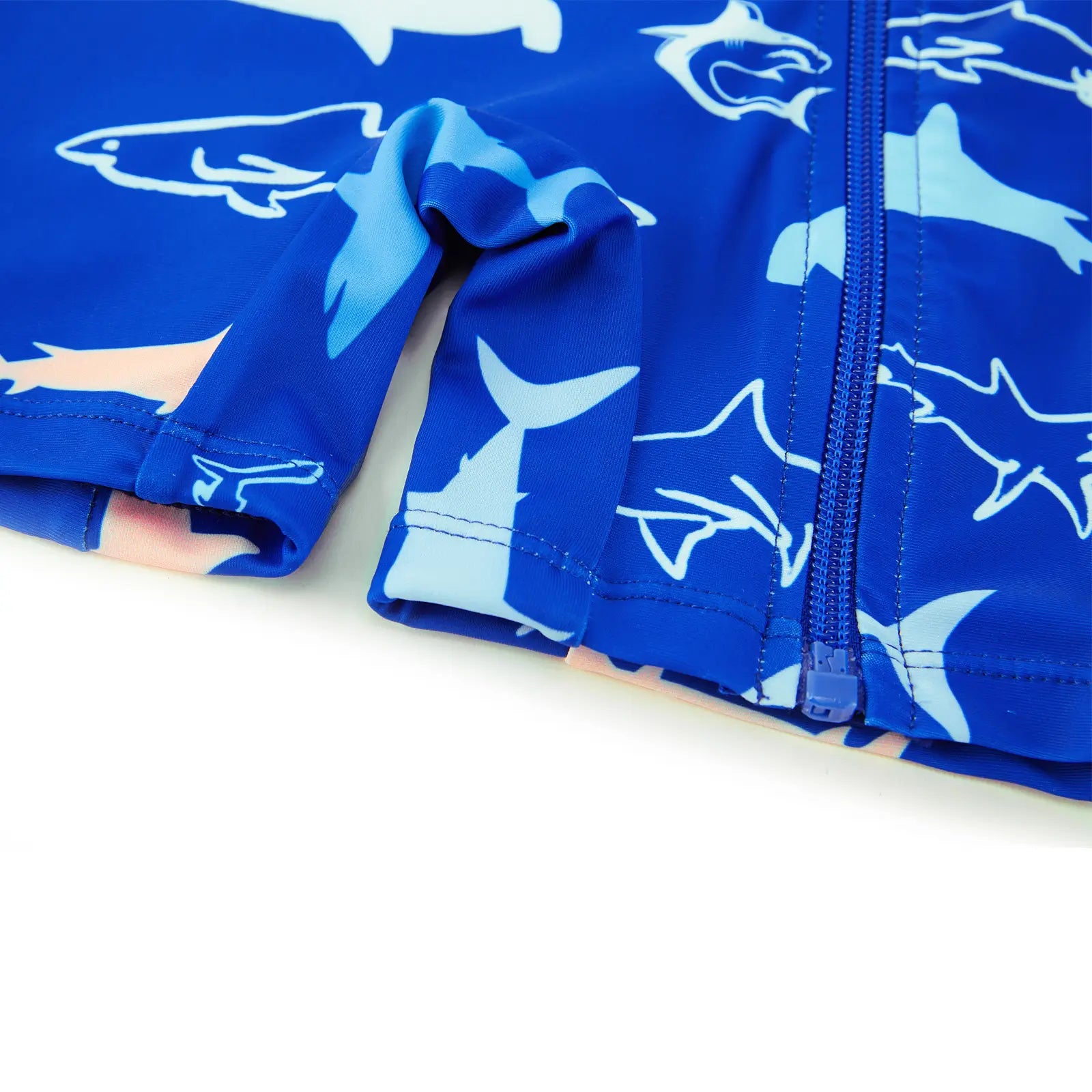 upandfast Baby Boy Full Zip Swimsuit UPF 50+ Rash Guard for Beach | Navy Shark