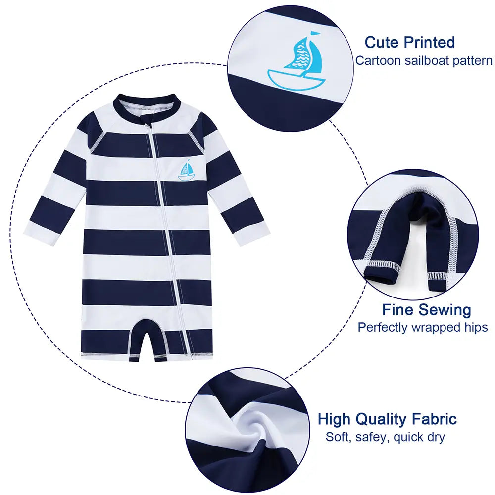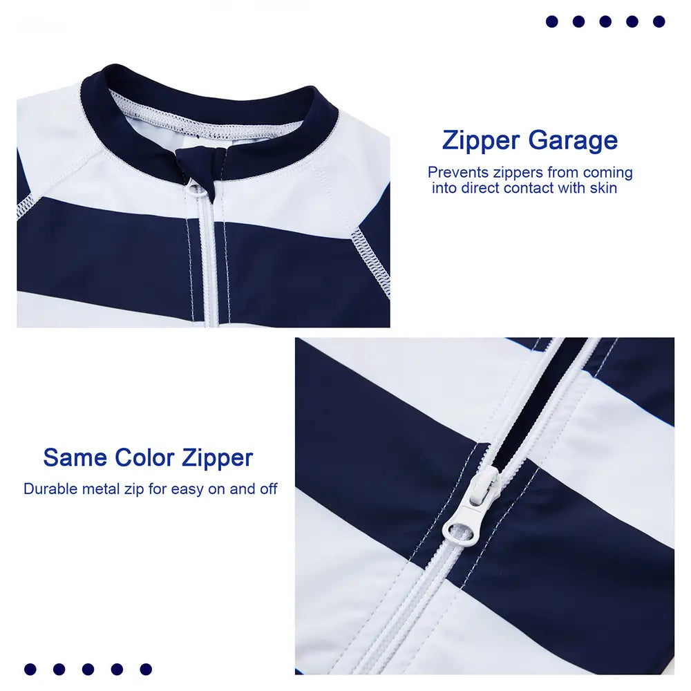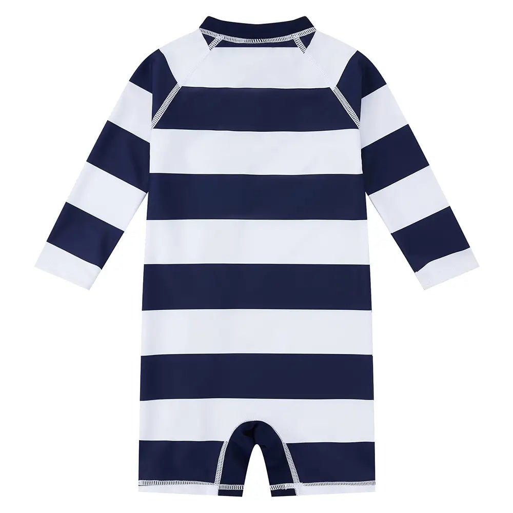 UPF 50+ Baby Boy One Piece Swimsuit with Full Zip-Striped