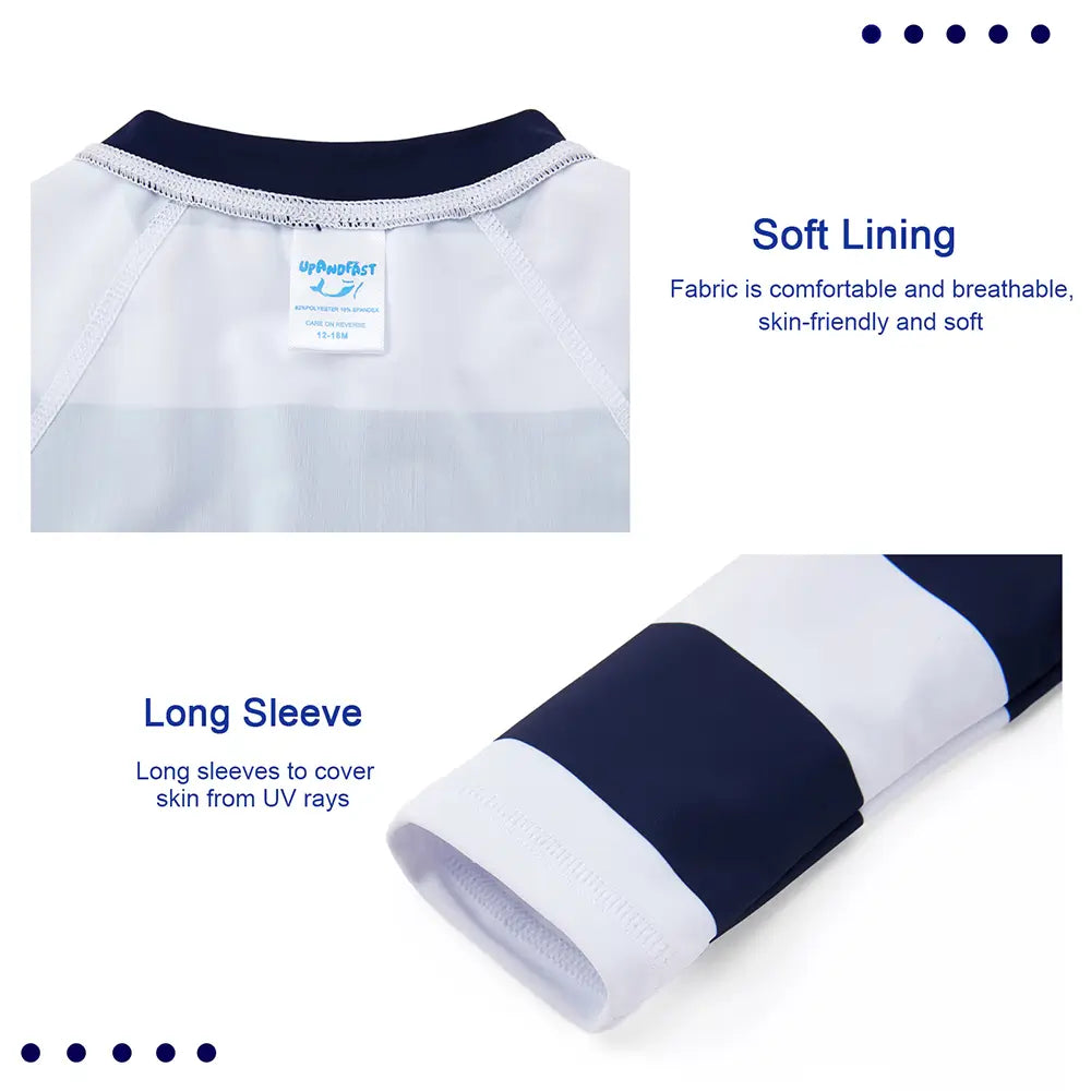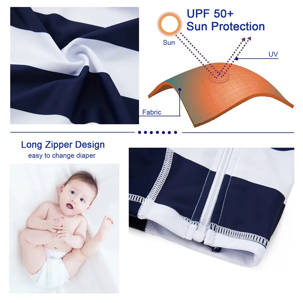 Full zip UPF 50+ sun protection baby bathing suit is a good choice for you to take your baby to beach trips, pool play, water parks and other outdoor activities!