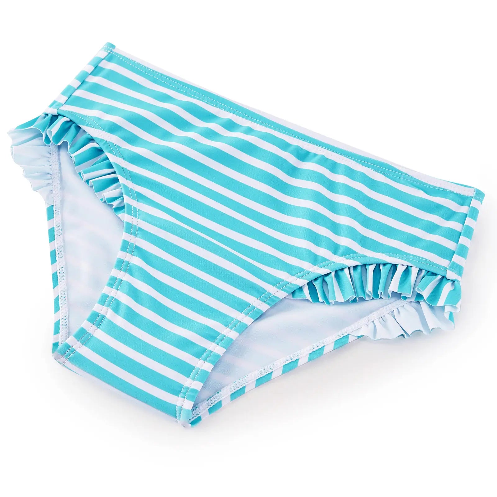 - Includes: Long sleeve rash guard top + ruffle trim bottoms